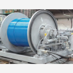 This device is used for developing, drawing, and recovering a heavy-load towing object from the sea level to on board a ship.