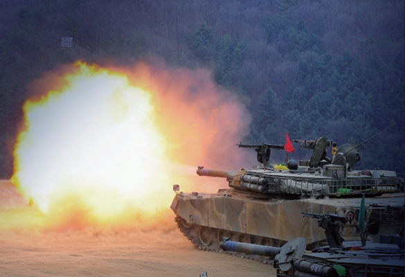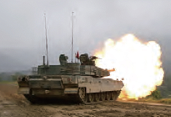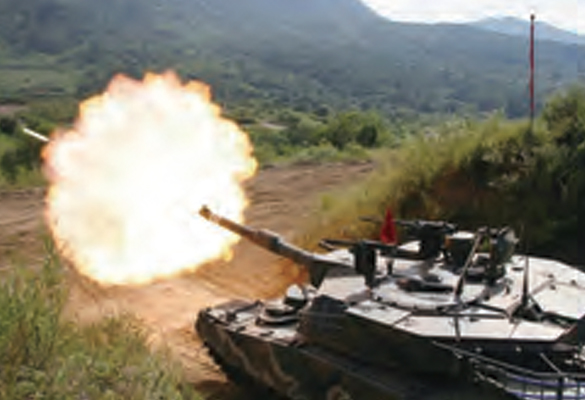 The Gun/Turret Driving System (GTDS) on the K1A1 MBT detects the impact of of yawing and pitching motion of the vehicle's body onto the gun and turret when actuating the gun and turret or driving on uneven road surfaces and curved roads, and enables to take aim at the target and to execute the precise fire while driving.
