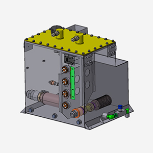 천무 발사대 유압구동장치는 유압을 사용하여 케이지를 상승, 선회 및 하강 시키고 차량을 지지하여 발사 시 충격에 의한 영향을 줄이고 안정적인 발사가 가능하도록 합니다.